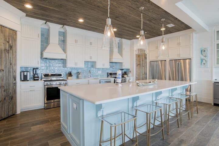 The Pearl is fully equipped and stocked to be your culinary home away from home… if your home had 3 of everything, that is. Yep, we have 3 fridges, 3 dishwashers, and multiple cooktops and ovens, all in modern stainless steel. You’ll also find granite countertops and all the essentials for your morning coffee. Gather around the banquet-style dining tables and take in Gulf views to beat any restaurant. No reservations required!