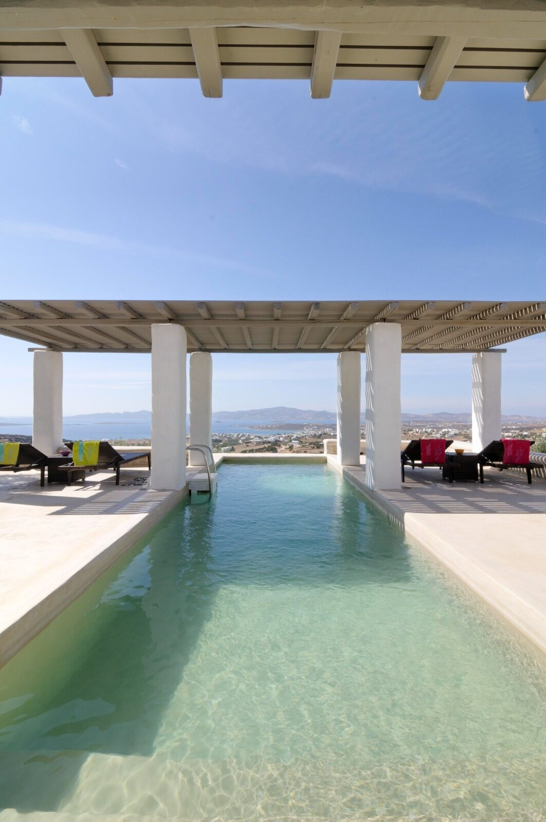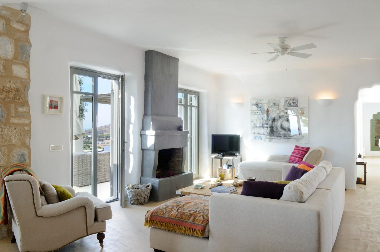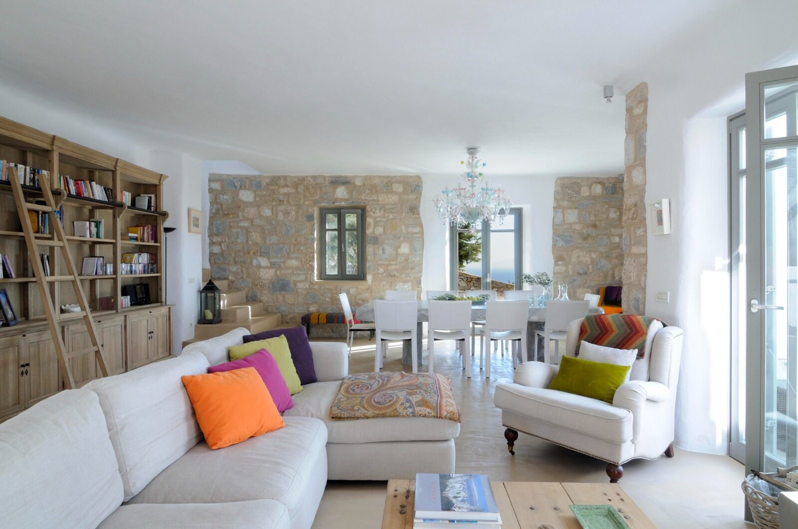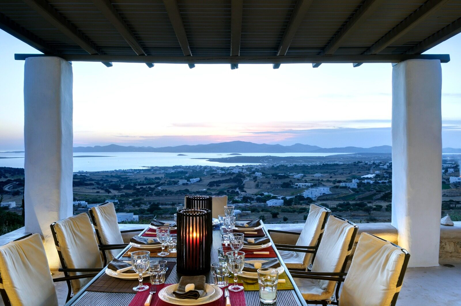 A beautiful private Greek villa perched above acres of olive yards, “Arktos” offers extensive colourful sea views over the islands of Antiparos. This exclusive villa of Cycladic archi­tecture is located in a privileged position over Agkeria bay. It enjoys extensive sea views and is blessed with colourful sun­sets, superb outlook and proximity to Farangas beach.