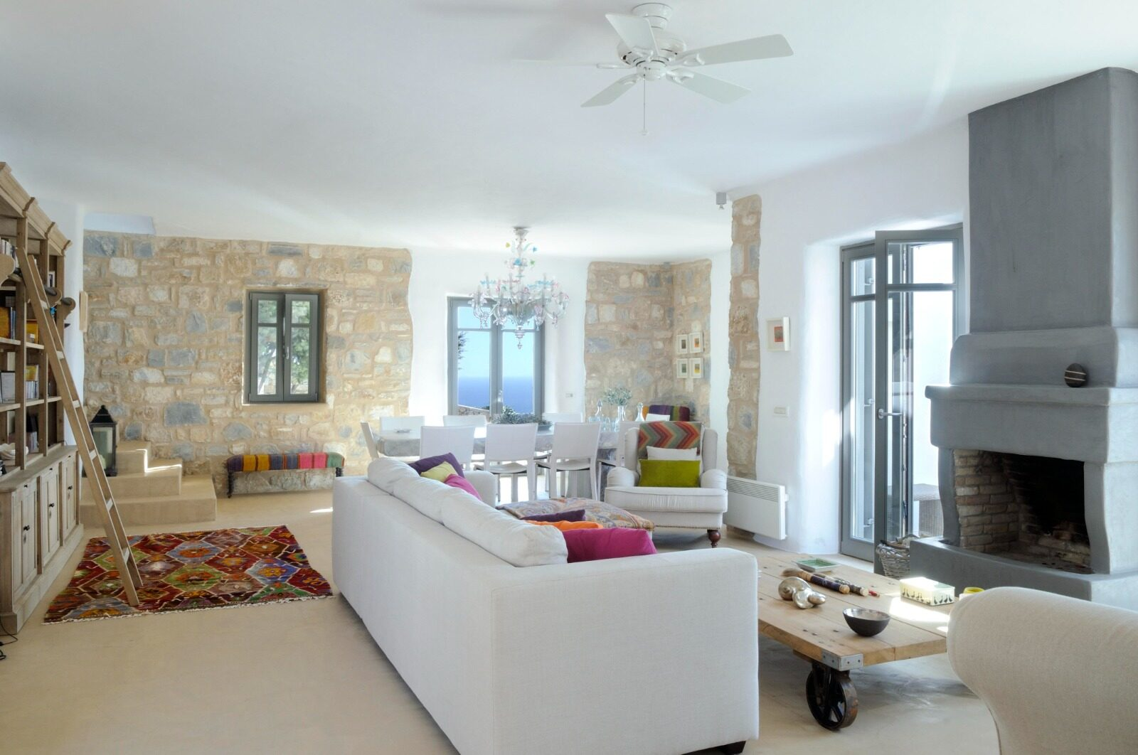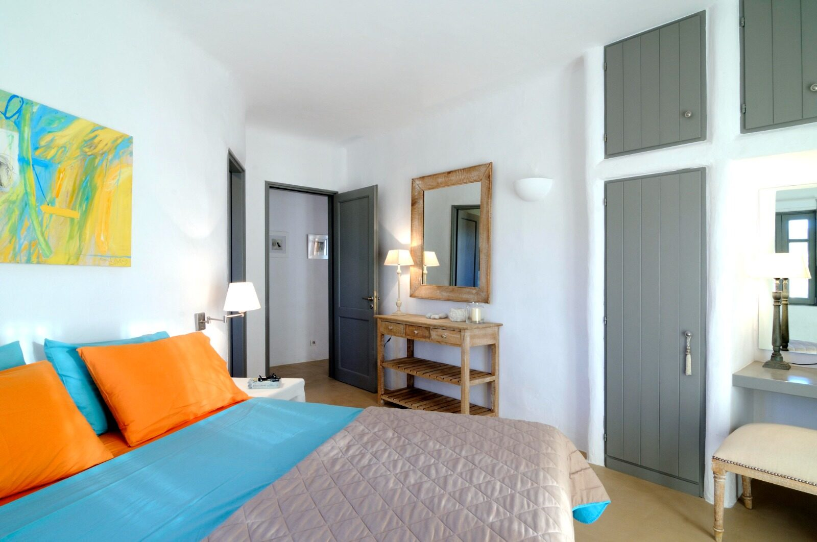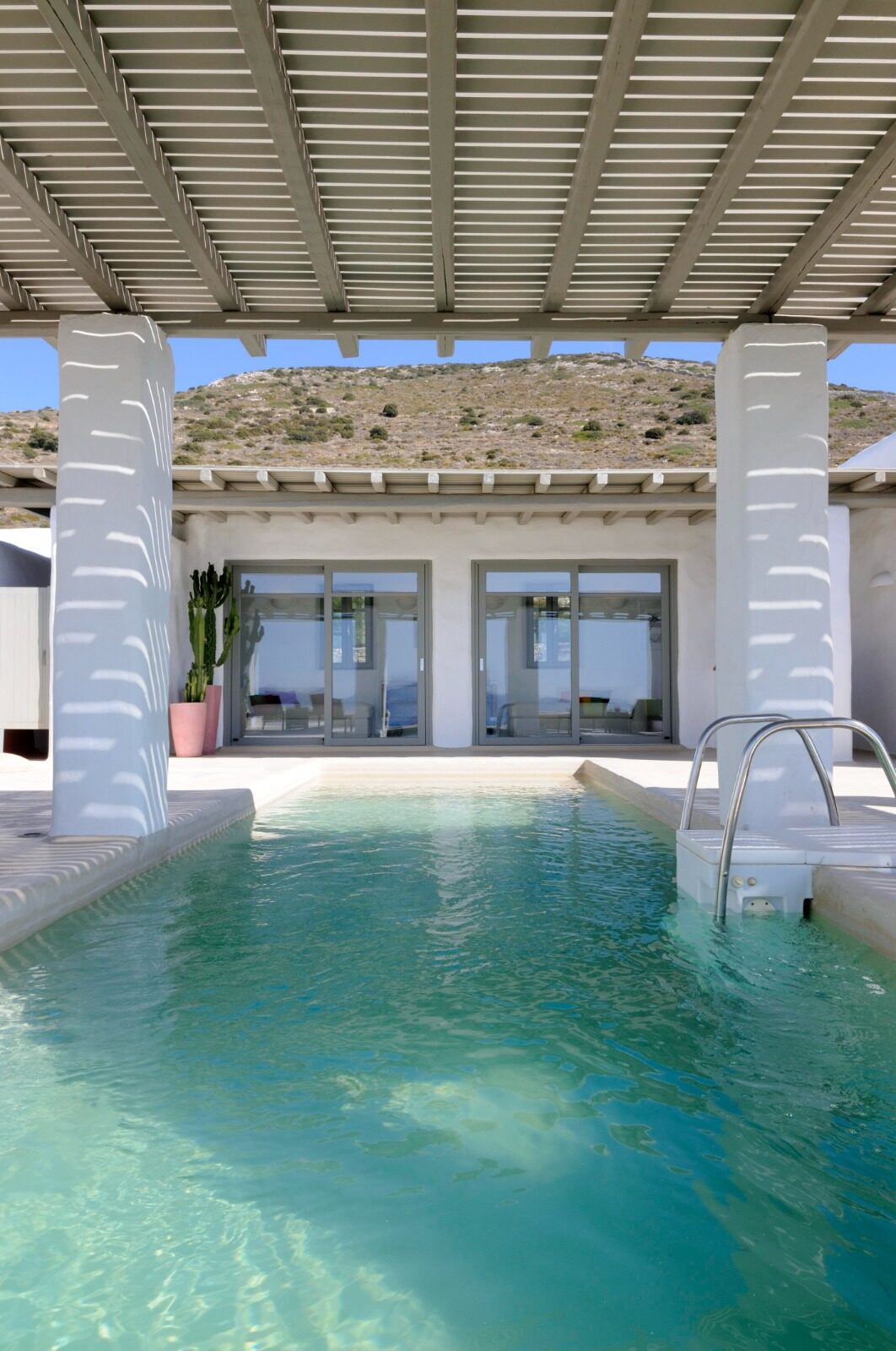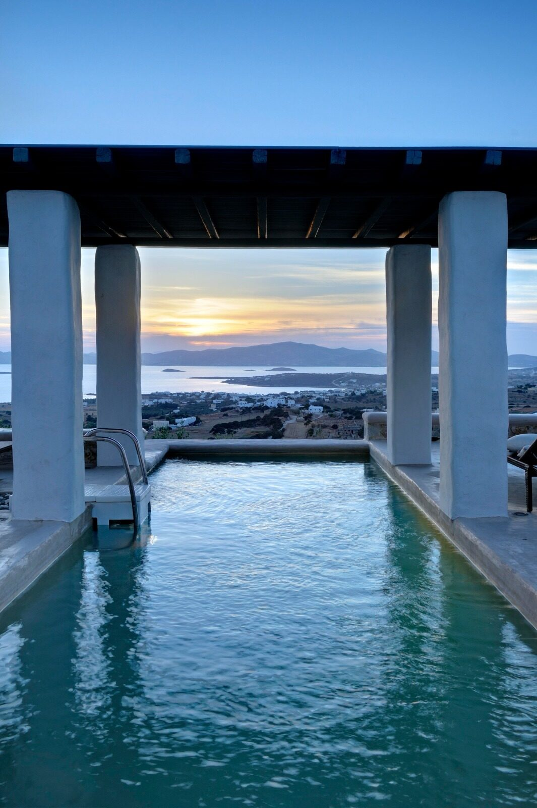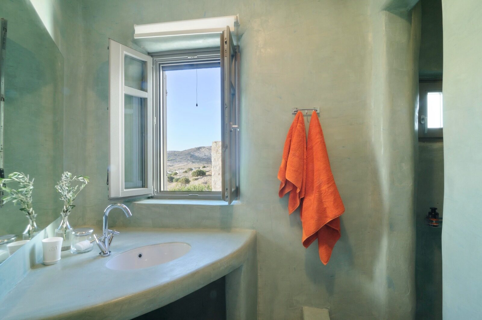 A beautiful private Greek villa perched above acres of olive yards, “Arktos” offers extensive colourful sea views over the islands of Antiparos. This exclusive villa of Cycladic archi­tecture is located in a privileged position over Agkeria bay. It enjoys extensive sea views and is blessed with colourful sun­sets, superb outlook and proximity to Farangas beach.