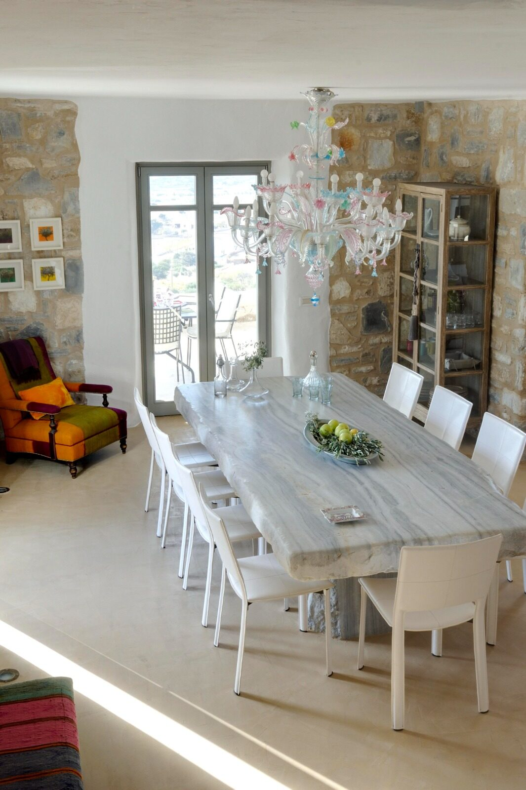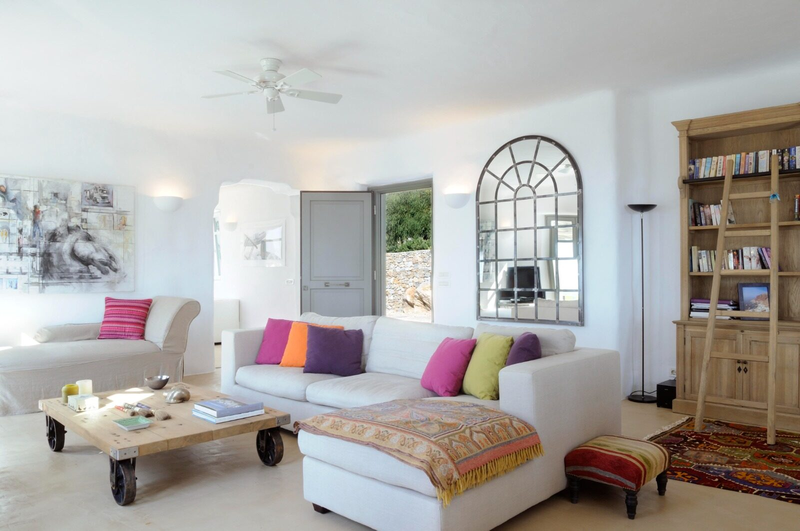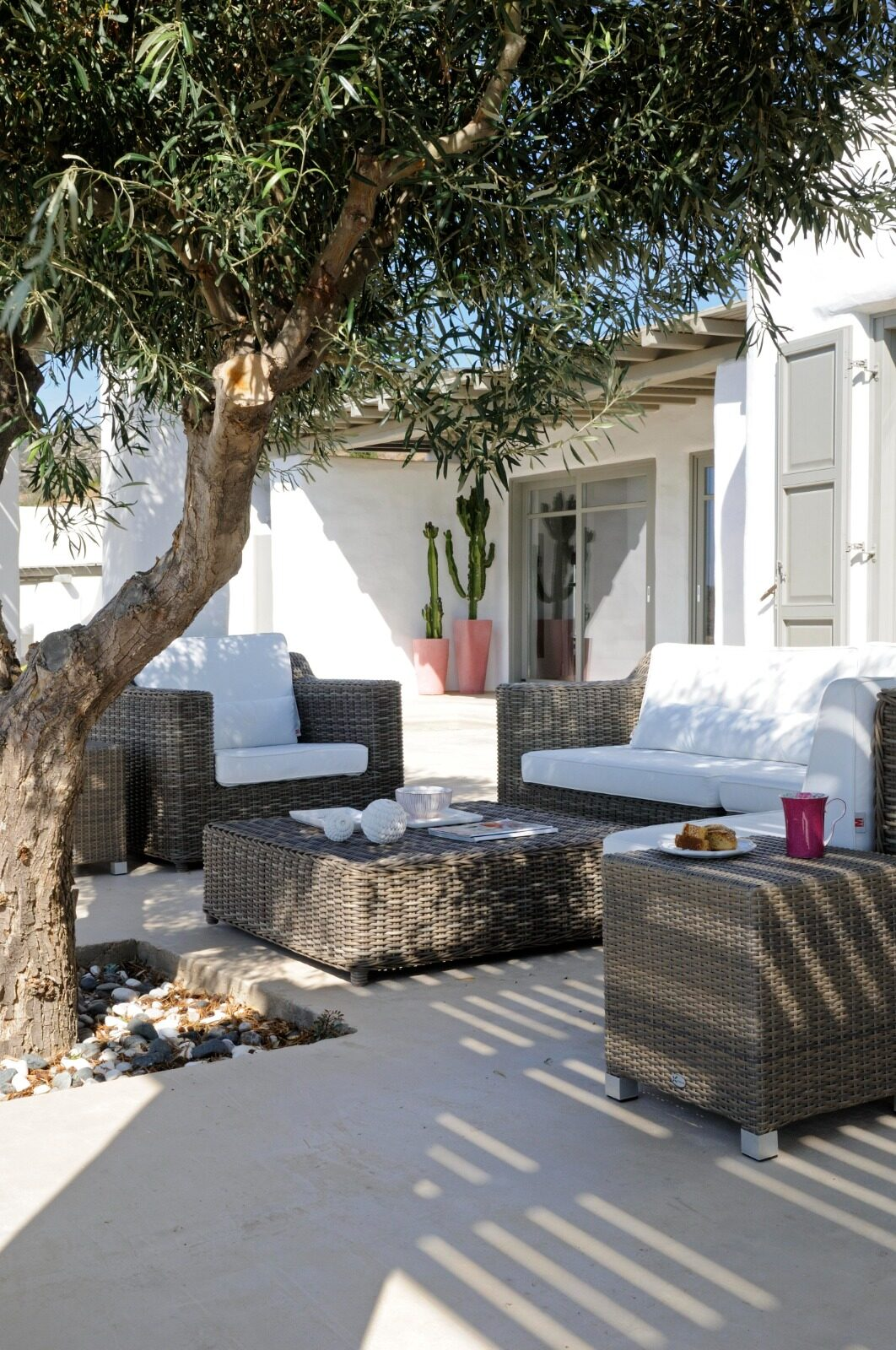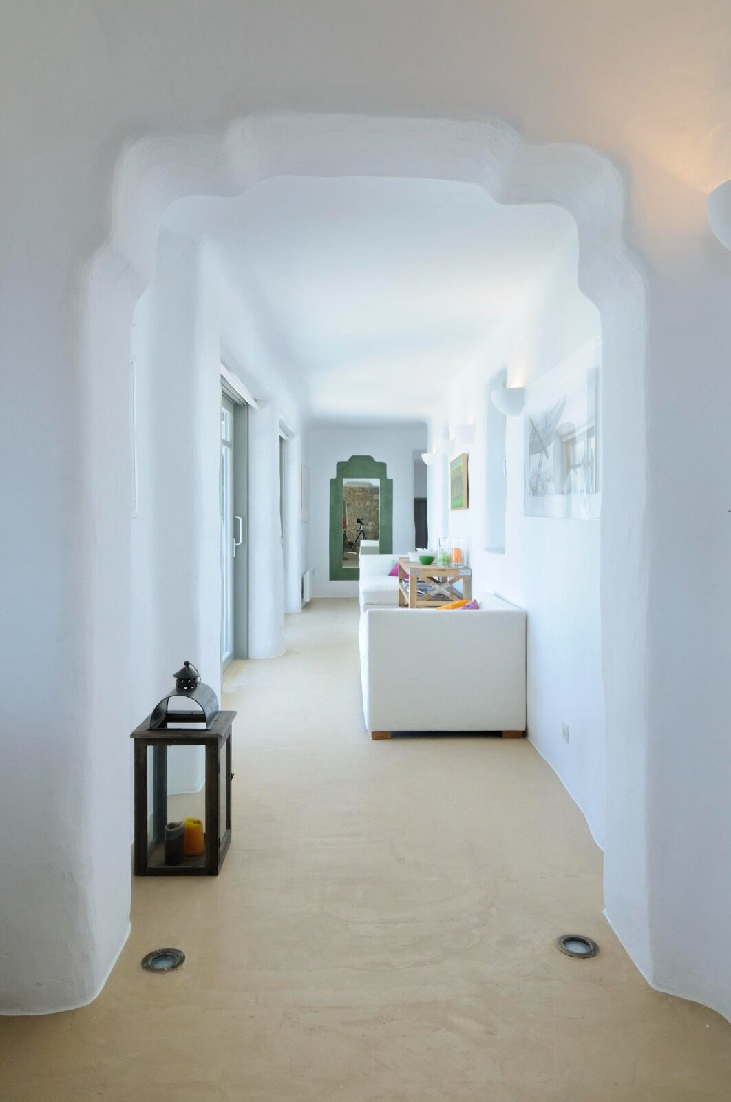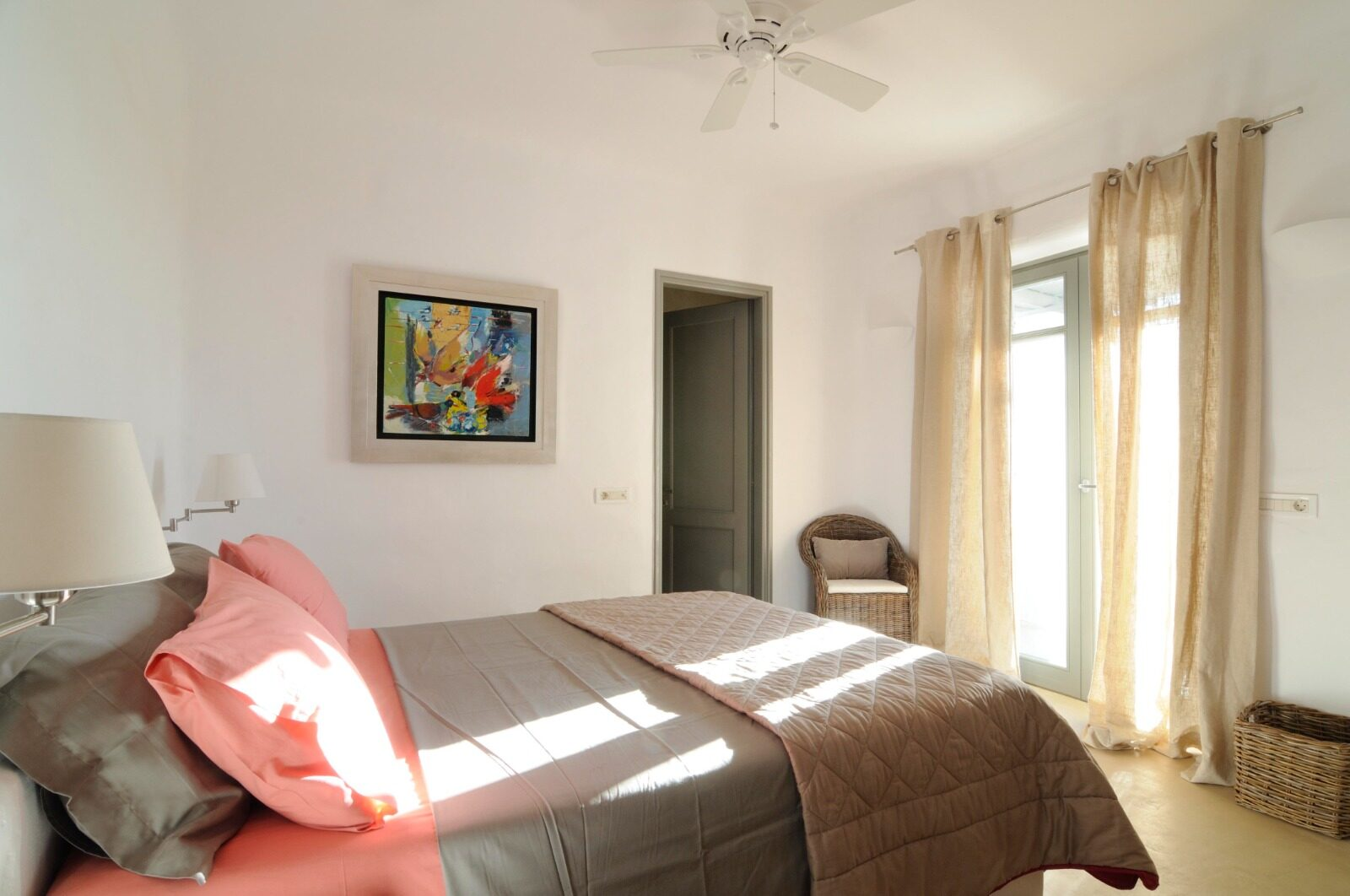 A beautiful private Greek villa perched above acres of olive yards, “Arktos” offers extensive colourful sea views over the islands of Antiparos. This exclusive villa of Cycladic archi­tecture is located in a privileged position over Agkeria bay. It enjoys extensive sea views and is blessed with colourful sun­sets, superb outlook and proximity to Farangas beach.