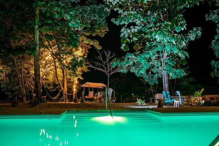 Villa Kantuta is nestled in the mountains behind Playa Avellanas and Playa Negra. Very quiet and relaxing space away from the buzzling coastal areas yet only 10 minutes drive from the best beaches. Villa Kantuta is part of Pinilla Highlands, an ecological community. There is plenty to do during day. Ideal for Teleworking. Pet friendly. For music lovers the villa has Alexa system with unlimited listening of your favorite tunes. Enjoy four swimming pools including a semi-olympic for swimmers.
