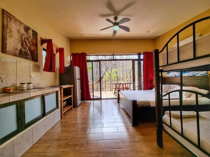 Villa Kantuta is a spacious 66m2 of open space, loft style, with integrated 20m2 terrace as you open the sliding glass doors. The terrace has a hammock and a gas grill with views towards the mountain. The Villa has a one acre backyard where the semi-olympic pool is located with stunning views to the ocean. We are pet friendly!
