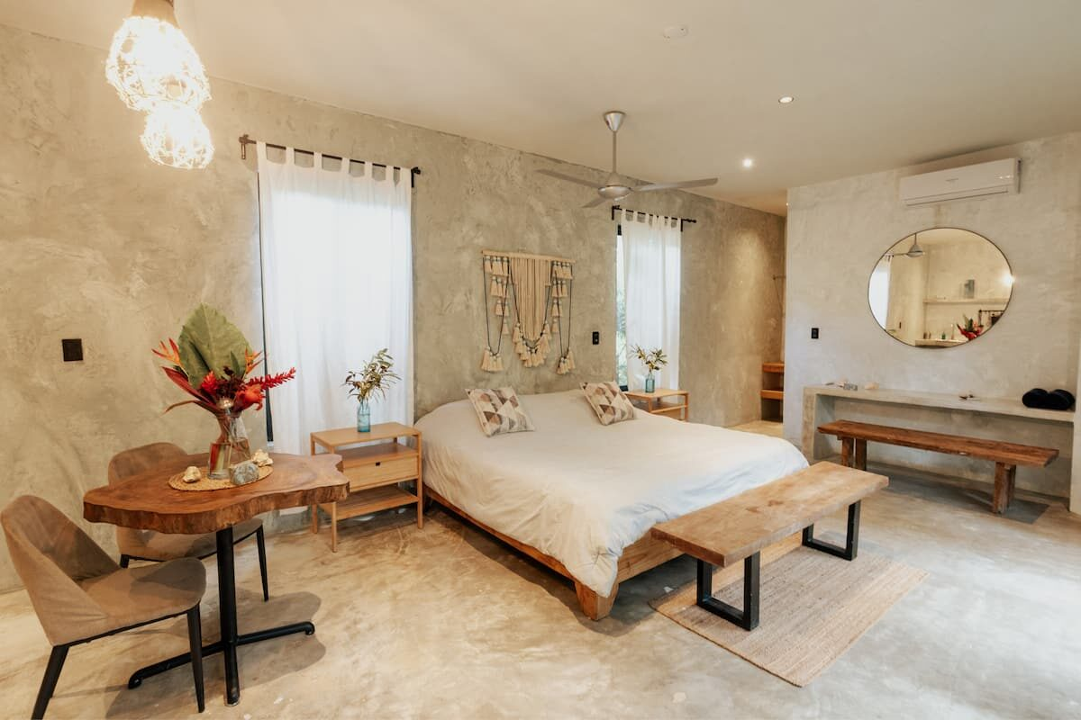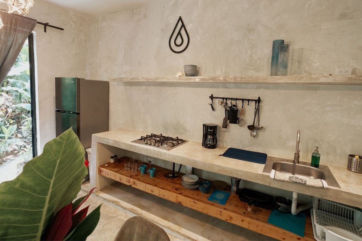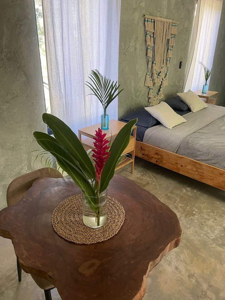 Enjoy a taste of the jungle life in these peaceful and beautiful studio and the comfort of your own kitchen, wifi, and AC. These are the most equipped rooms in El Valle just a 5 minute walk from the beach nestled under tropical flora.