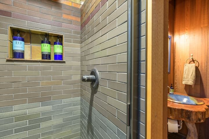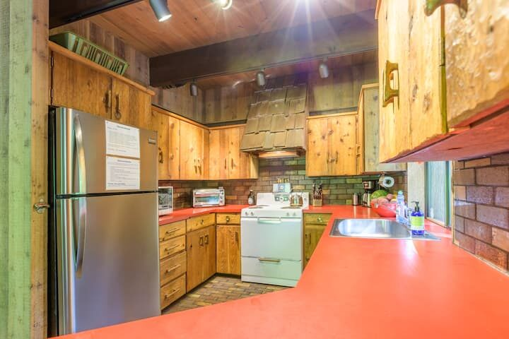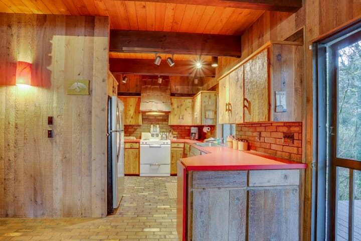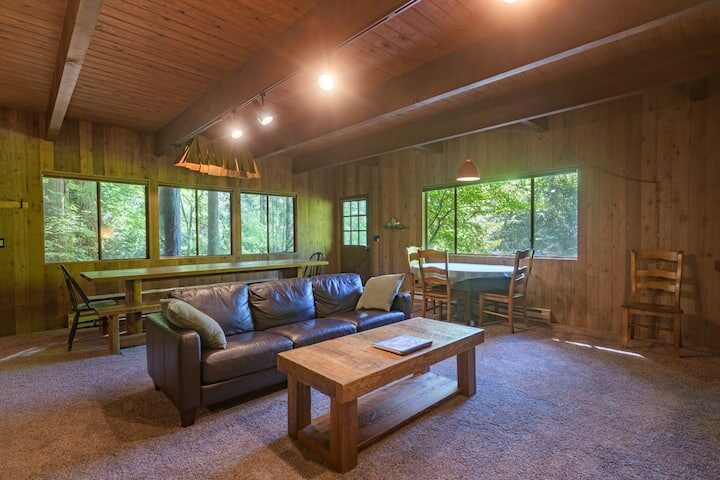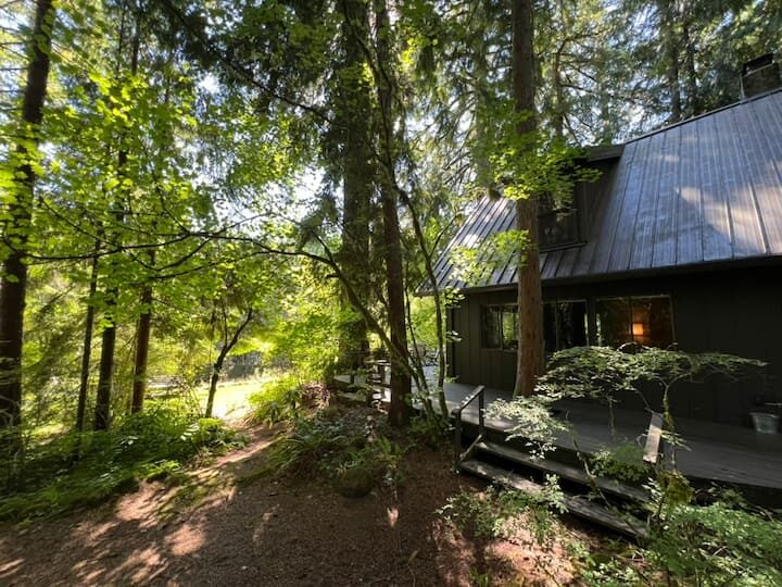 Stay along a bank of the Zig Zag River in the foothills of Mt. Hood in this handcrafted cabin. Set at the end of a quiet, forested street just off Hwy 26, this cozy cabin offers solitude surrounded by majestic beauty. With a rustic wood and handmade tile interior, the cabin has a classic feel with modern convenience. Outside, the mountains offer visual serenity, and the river creates a dreamy audio ambiance that drowns out road noise and makes it an ideal space to truly “get away”.