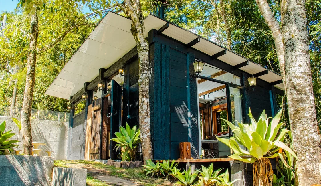 Cabana rústica romântica com banheira na mata 🌿🖤